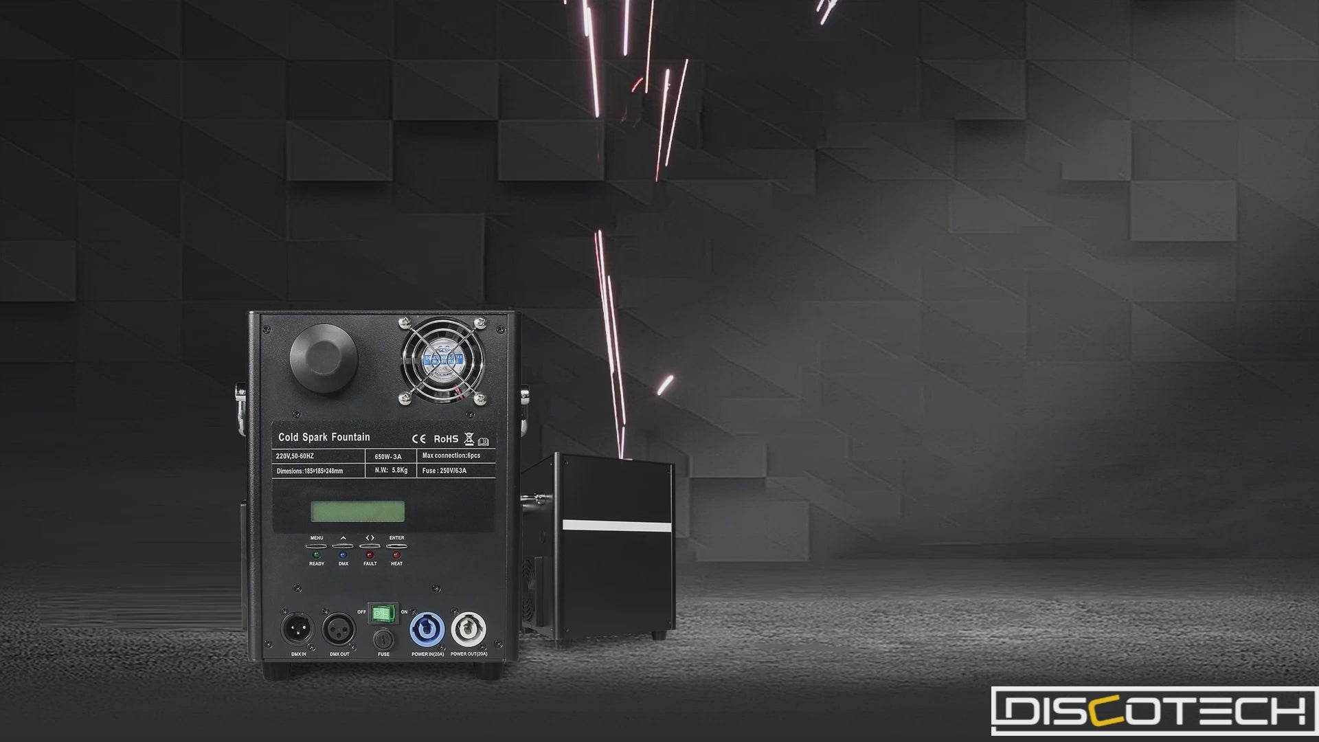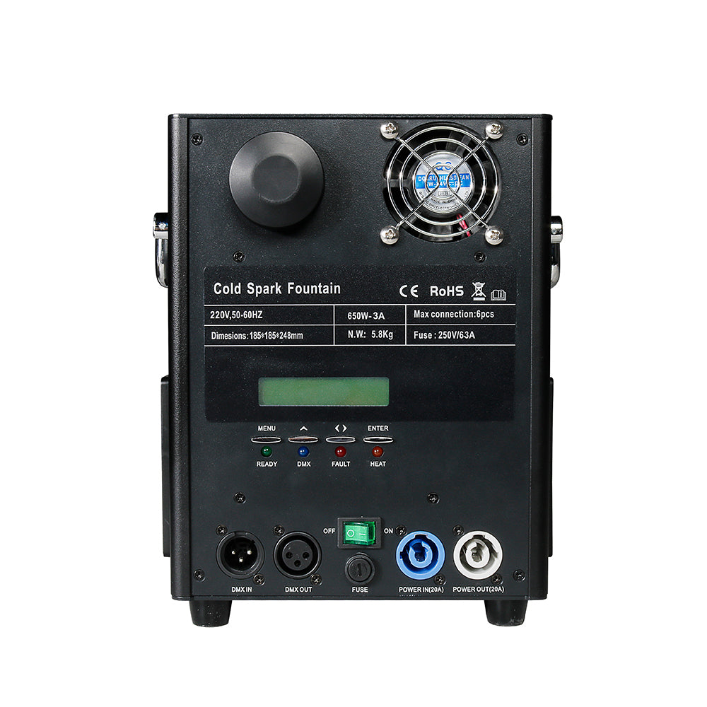 Masina de scantei reci ideala pentru interior/exterior, compacta, rezistenta, timp lung de tragere cu telecomanda inclusa.
